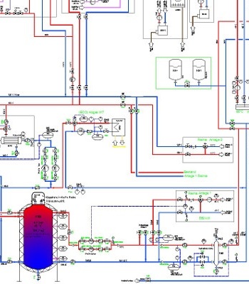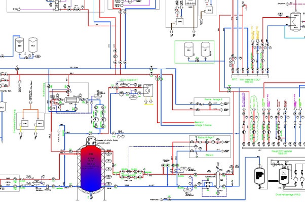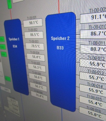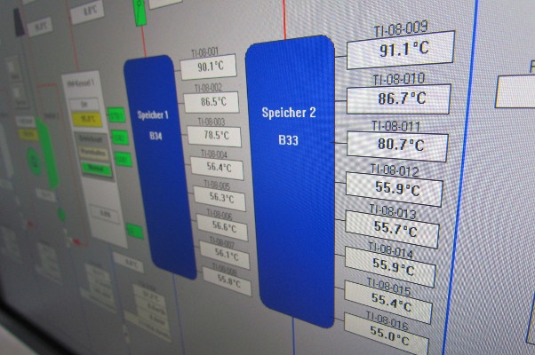Flow chart of a heat supply plant with CHP and heat storage vessel